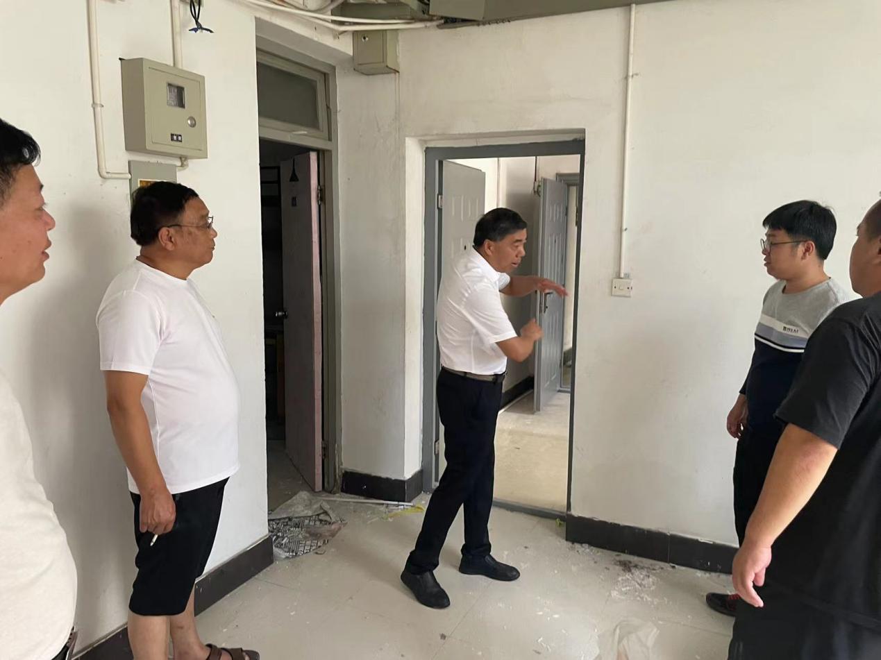王院长现场听取了后勤管理处、项目承办方负责人对于现场施工进度、施工安全的工作汇报。他对高温下施工的工人们表达了慰问,对坚守在各岗位的工作人员表示感谢。他强调,暑期天气极为炎热,各施工单位要高度重视生产安全工作,加强高温天气下的安全防护,加强管理、保证质量,按时完成后勤改造施工任务。