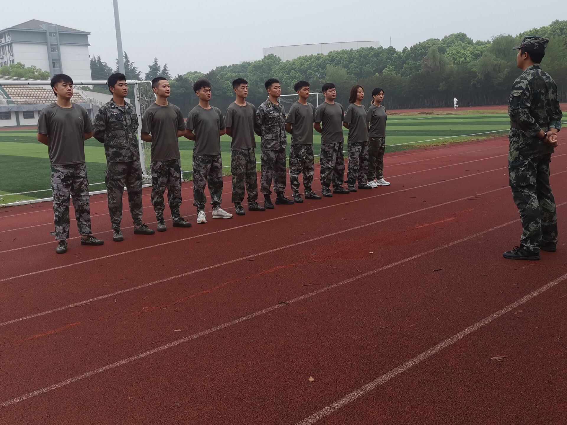 9月1日上午,威廉希尔官网2022年学生军训教官在田径场开展了本学年集训活动,为2022年新生军训做准备。学院第一批43名在校退伍士兵参加了此次集训。院长王国平、党委副书记兼副院长王楷,以及学生工作(部)处、人武部负责人参加了开训仪式。