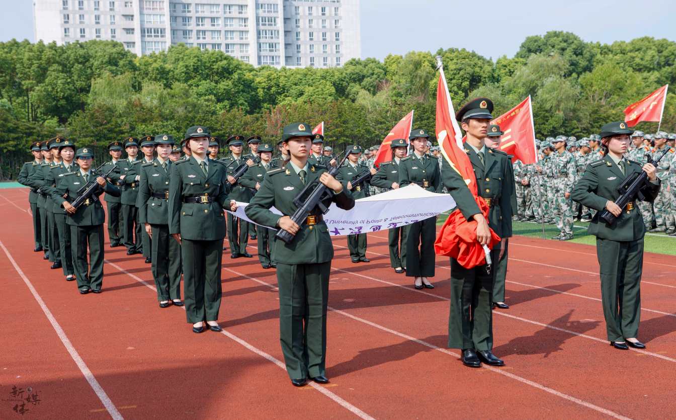2500余名新生列着整齐的队伍,在教官的带领下,以嘹亮的口号、严密的纪律、过硬的素质接受主席台领导和老师的检阅。军乐声声,战旗猎猎,4个营32个军训方队依次经过主席台前,步伐坚定、队形整齐、气宇轩昂,展现了新时代中国青年“请党放心、强国有我”的精神风貌。1000余名受训学生分三个方阵展示了海军旗语、女子擒敌拳、防爆处突等表演。整齐划一的动作,刚劲有力的拳脚,娴熟连贯的队形变换,赢得了在场师生的阵阵掌声。