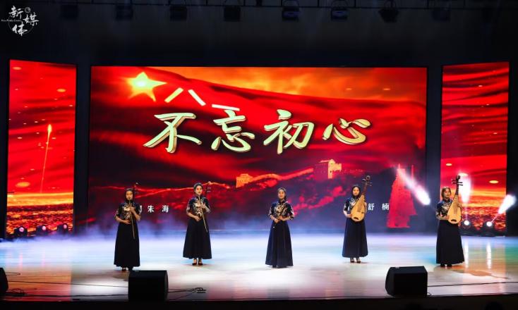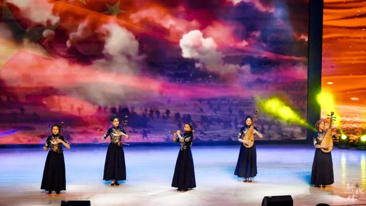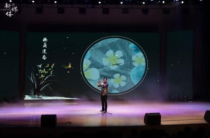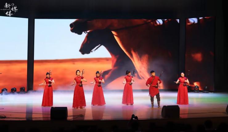 本场音乐会分成“艺心向党”、“花开大地”、“雅韵流芳”三个篇章。一首大气磅礴的民乐小合奏《腾飞》拉开了整场演出的帷幕,红色的曲调高扬着红色的热忱与希望,描绘着神州一片欢腾的盛世华景。一曲《不忘初心》标志性的收尾,诉尽峥嵘岁月中的衷肠与信念,点明“艺”心向党,更是一心向党的主题。紧接着,古筝独奏的《山丹丹开花红艳艳》领衔着四首乐曲,带领观众进入“花开大地”的世界。不同地域的不同曲风,不同乐器的不同音色,诉说着同一蓝天下共同奋斗的我们。四首风格迥异的乐曲生动地展现了一片姹紫嫣红的祖国盛世,或高亢淳朴,或热情酣畅,或悠扬婉转。在新江南丝竹演奏的《品茗观鱼》的动听音乐声中,第三篇章“雅韵流芳”缓缓展开。这里的闲雅之乐更是别出心裁,花草皆可有情,鱼水皆有寄托,自由的高天之歌与砥砺的激昂之曲可谓相得益彰。婉转的乐声流淌在礼堂的每个角落,沁人心脾的风雅音韵为此次音乐会画下了一个圆满的句号。