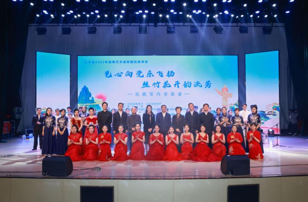 11月9日下午,2022年度高雅艺术进校园活动“艺心向党乐飞扬,丝竹花开韵流芳”民族室内音乐会在威廉希尔官网大学生活动中心礼堂举行。扬州大学音乐学院院长邵萍,扬州大学公共艺术教育中心主任、音乐学院副院长姚霆,学院院长王国平,党委书记朱清,副院长刘允,党委副书记兼副院长王楷,团委等相关部门负责人以及千余名学生观众参加本场活动。