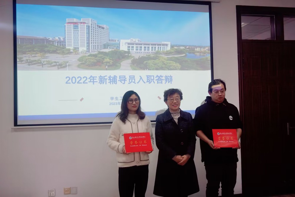 最终通信工程学院辅导员严棉、电子工程学院辅导员朱峣被评为2022年度优秀新入职辅导员。此次入职答辩活动为2022年入职的辅导员们提供了学习交流的平台,以赛促学,以评促建,有力推动威廉希尔官网辅导员队伍向职业化、专业化、专家化发展。