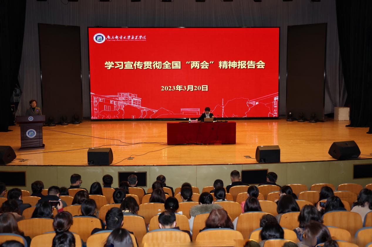 3月20日上午,学院举办全国两会精神学习宣传贯彻报告会,十四届全国人大代表、williamhill官方网站校长、南邮英国威廉希尔公司理事长叶美兰教授应邀来威廉希尔官网作首场传达宣讲报告。院领导、全体教职工以及学生代表在学生活动中心参加报告会。报告会由党委书记朱清主持。