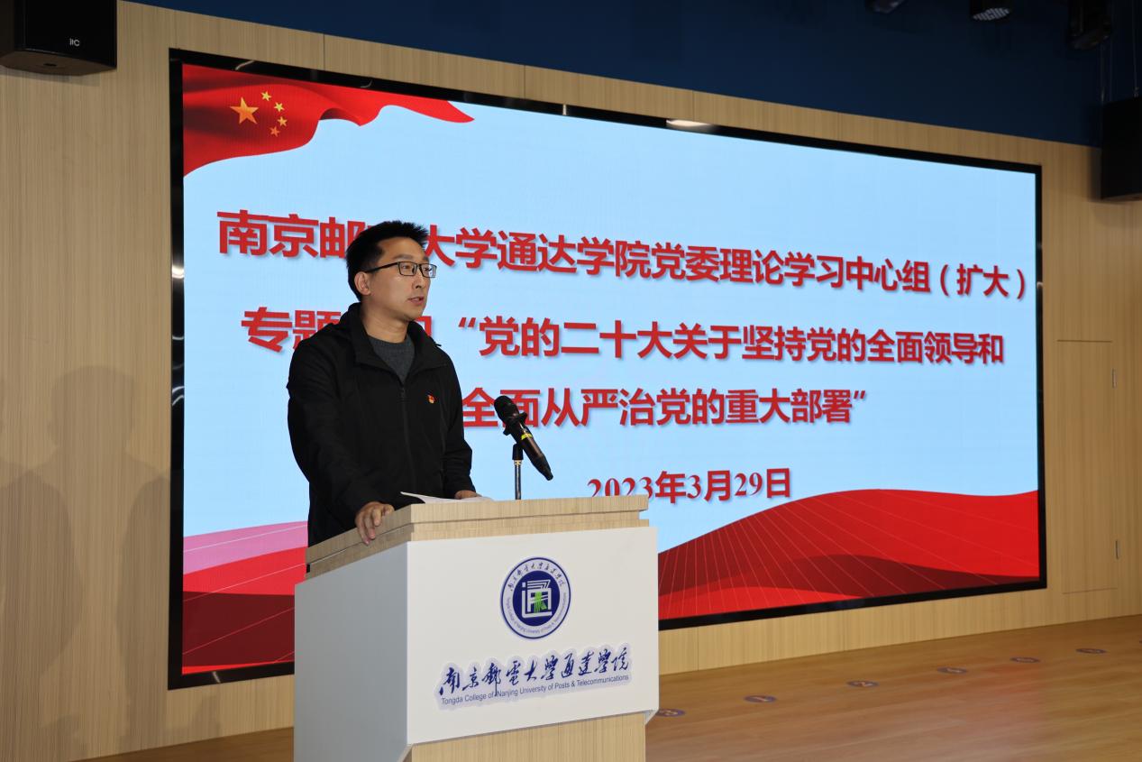 会上,张建波从全面从严治党的角度重温导读了党的二十大报告和习近平总书记在二十届中央纪委二次全会发表重要讲话。并结合工作实际,围绕以彻底的自我革命精神坚持不懈把全面从严治党向纵深推进,谈了认识与体会。他谈到,党的二十大报告对新征程全面从严治党作出了新部署,提出两个“永远在路上”新要求、健全全面从严治党体系新思路、全面从严治党新观点和新举措。二十届中央纪委二次全会保障了党的二十大决策部署贯彻落实,要一刻不停推进全面从严治党。作为学院纪检干部,要以习近平新时代中国特色社会主义思想为指导,全面贯彻落实党的二十大精神和上级部署要求,贯通履行协助职责和监督专责,狠抓作风建设,强化廉洁教育,一体推进不敢腐、不能腐、不想腐,更好发挥监督保障执行、促进完善发展作用,为学院事业发展提供坚强保障。