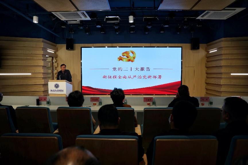 3月29日,学院党委理论学习中心组在双创中心路演大厅组织扩大学习会,开展“党的二十大关于坚持党的全面领导和全面从严治党的重大部署”专题学习研讨。全体院领导、纪委委员、中层干部和重点岗位科职干部参加了学习会。会议由学院纪委书记张建波主持。