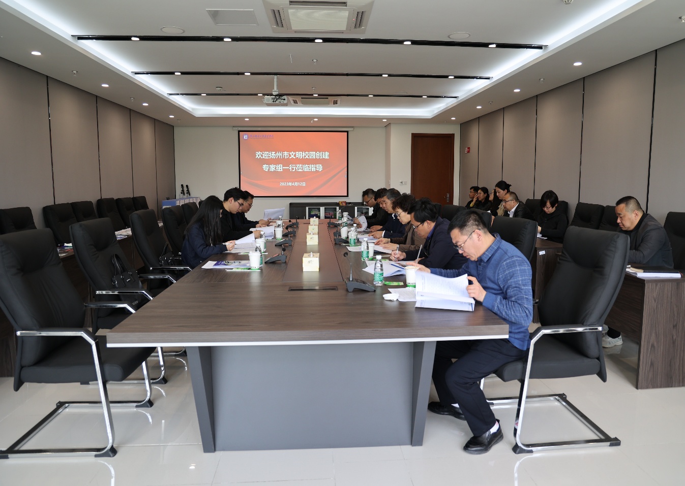 4月12日下午,扬州市文明校园创建检查组一行来威廉希尔官网检查文明校园创建工作。威廉希尔官网院长王国平、党委书记朱清、副院长倪可、纪委书记张建波、党委副书记兼副院长王楷及相关部门负责人接待并陪同。