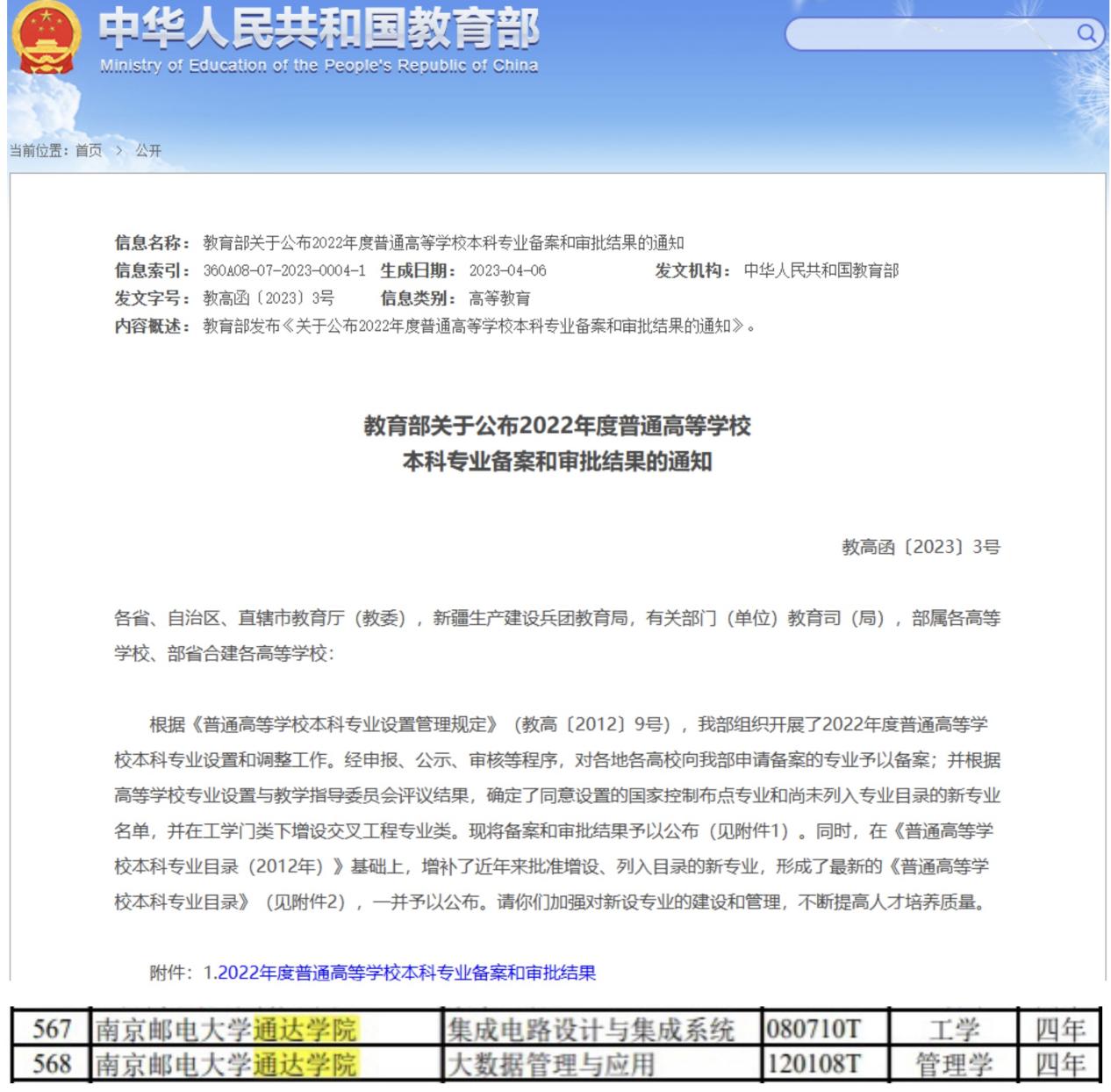 近日,教育部下发《教育部关于公布2022年度普通高等学校本科专业备案和审批结果的通知》(教高函〔2023〕3号),威廉希尔官网成功获批集成电路设计与集成系统、大数据管理与应用两个专业。