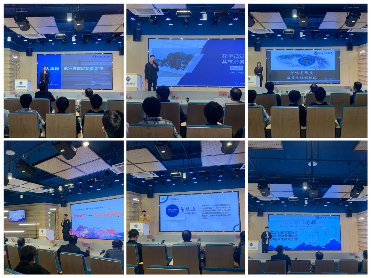 随着学院创业氛围逐渐浓郁,更多学生提交入驻众创空间申请。本次共6个项目参加评审,分别来自通信工程学院、计算机工程学院与商学院等。各小组依次上台由项目团队代表进行10分钟的项目展示,接着专家针对项目进行点评和提问,并提出进一步改进意见。
