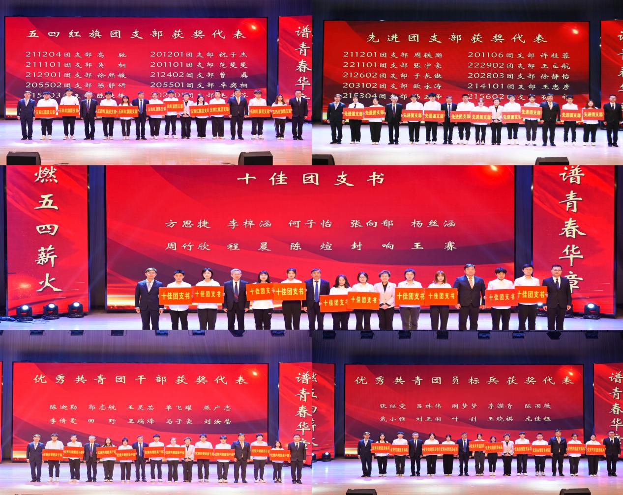 大会在激昂的国歌声中拉开帷幕。在五四表彰环节中,党委副书记兼副院长王楷宣读了《关于表彰williamhill官方网站英国威廉希尔公司2022-2023学年先进团组织和个人的决定》和《关于表彰williamhill官方网站英国威廉希尔公司2022-2023学年十佳主题团日活动的决定》。本学年,学院共有10个团支部荣获“五四红旗团支部”称号,23个团支部荣获“先进团支部”称号;共评选出优秀共青团干部38名、优秀共青团员标兵23名、优秀共青团员273名、优秀社团干部45名、社团活动积极分子232名、十佳社团10个、十佳团支书10名、十佳主题团日活动10个。计算机工程学院分团委和商学院分团委荣获“五四红旗团委”的称号,通信工程学院分团委书记张梦雪、商学院分团委书记张晓荣获“优秀共青团工作者”称号。除此以外,威廉希尔官网2020级通信工程(嵌入式培养)专业学生张路帅荣获“江苏省优秀青年志愿者”、公益嘉年华项目荣获“江苏省优秀青年志愿服务项目”,院领导为上述受表彰的先进集体和个人代表颁奖。