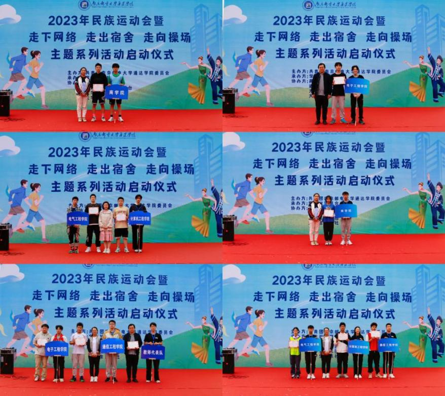经过激烈又欢快的比拼,民族运动会中,商学院获得一等奖,计算机工程学院、电气工程学院获得二等奖,通信工程学院、电子工程学院以及教职工队伍获得三等奖。学院对抗赛中,电子工程学院获得一等奖,商学院获得二等奖,计算机工程学院、电气工程学院、通信工程学院获得三等奖。