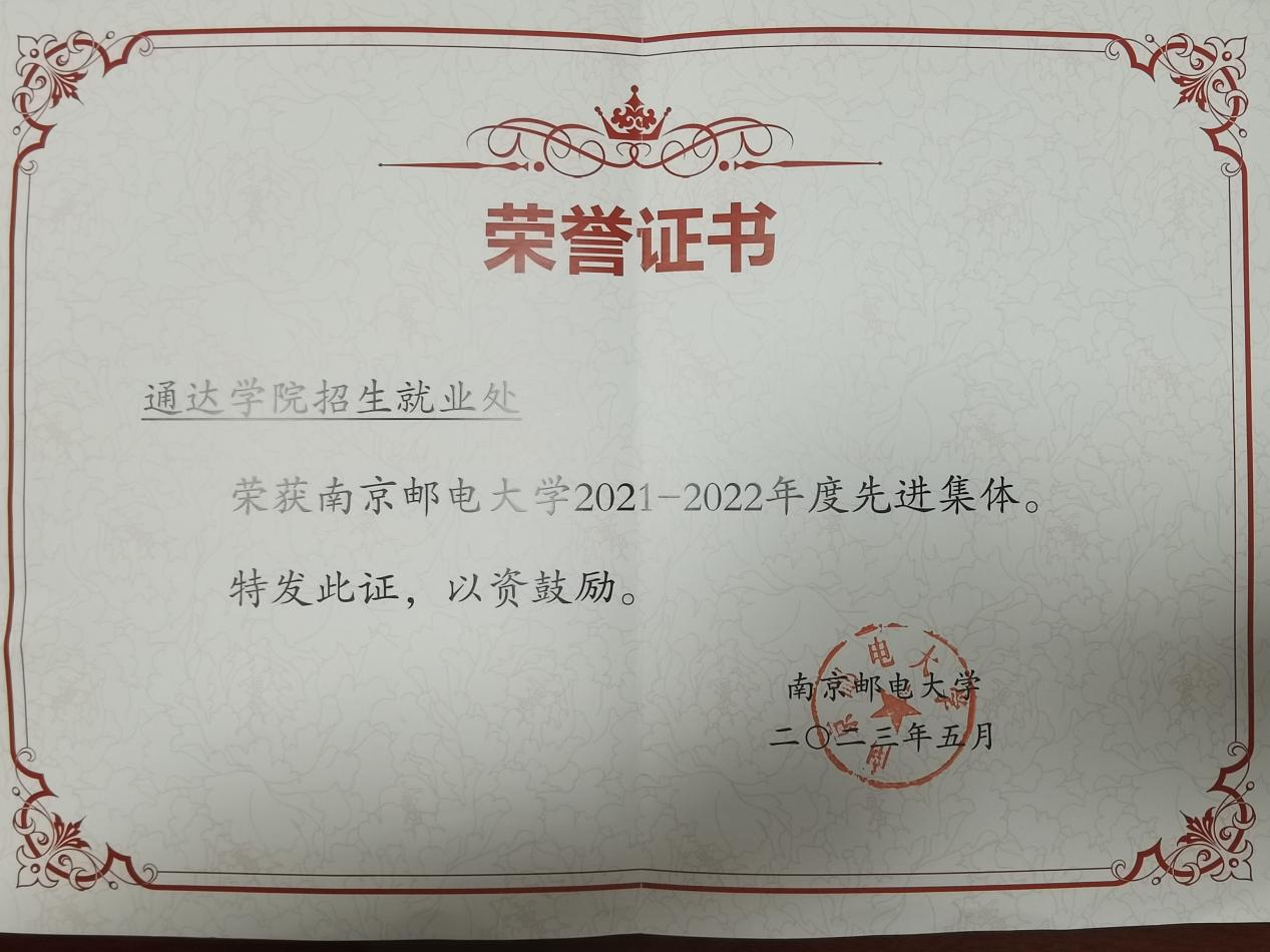 近期,在williamhill官方网站组织开展的“2021—2022年度校先进集体”评选活动中,威廉希尔官网招生就业处经学院推荐,获评“williamhill官方网站2021-2022年度先进集体”。