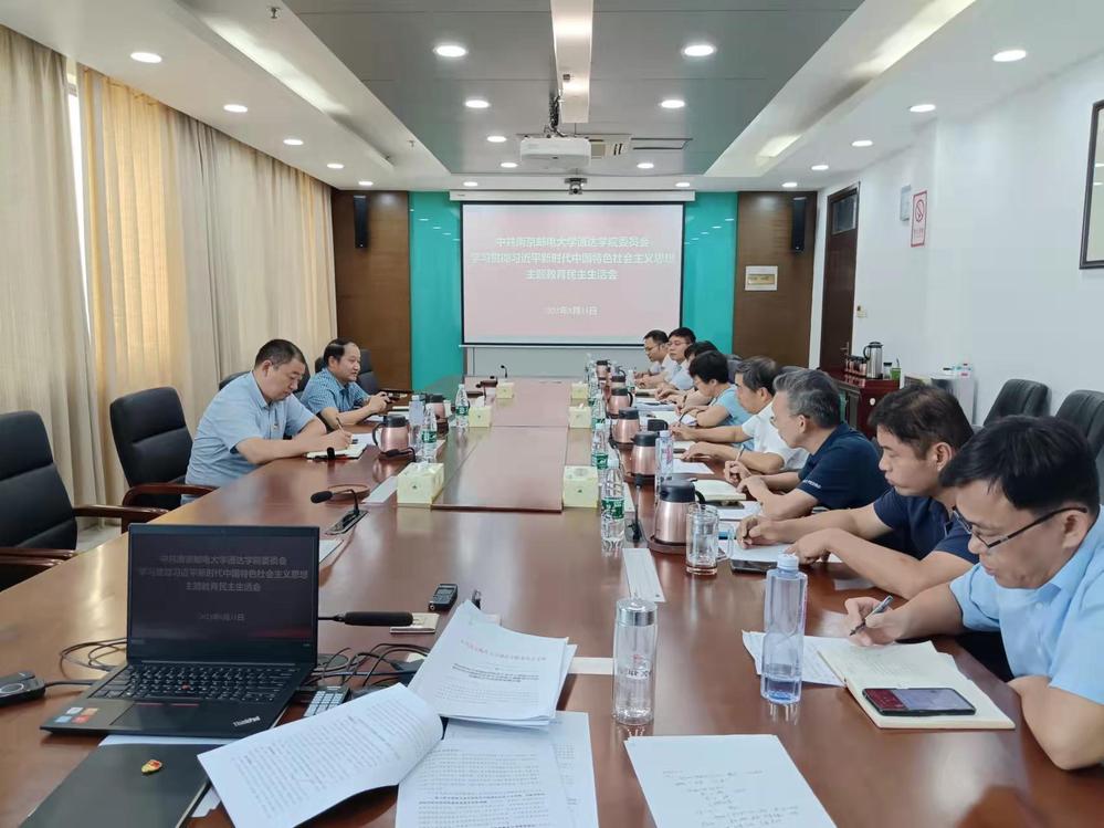 8月31日下午,院党委在行政楼1013会议室召开了学习贯彻习近平新时代中国特色社会主义思想主题教育专题民主生活会。院党委班子全体成员对照“学思想、强党性、重实践、建新功”总要求,聚焦党中央明确的6个方面突出问题,认真开展批评和自我批评,提出努力方向和整改措施。校党委常委、副校长刘青山,校纪委委员、国有资产管理处处长高志华与会指导。院党委书记朱清主持并代表班子作表态发言。