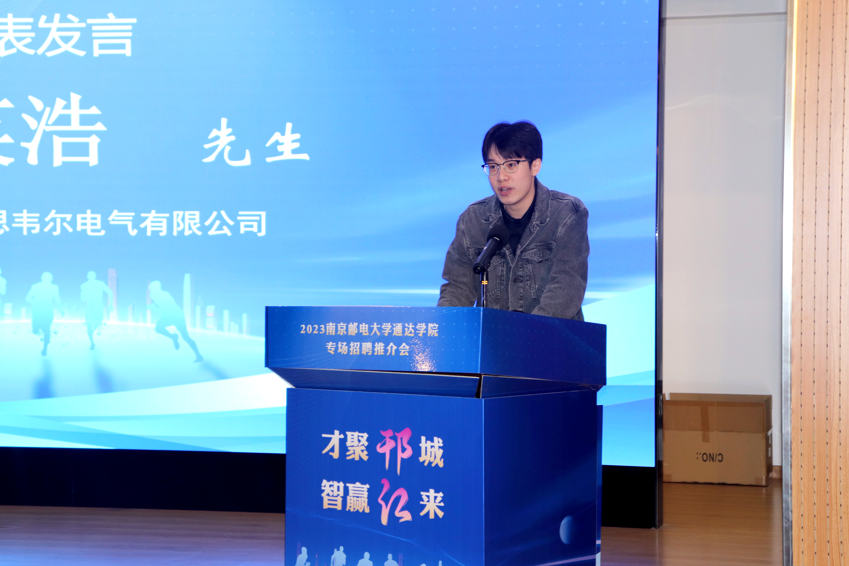 在推介会上,邗江区副区长罗剑在致辞中表示,“要充分挖掘本地高校项目和人才资源,建立长效合作机制,促进产学研深度融合,赋能地方经济高质量发展。”威廉希尔官网院长王国平在致辞中感谢邗江区政府对威廉希尔官网毕业生就业工作的大力支持。同时介绍了英国威廉希尔公司的发展历程、目标定位以及专业情况,他希望各位同学能积极选择留扬留邗就业创业,能在扬州、邗江这块“好地方”发展成长,把“好地方”建设得好上加好、越来越好。邗江区委组织部副部长徐宽兴介绍了邗江整体产业情况及人才引进政策。丰尚智能公司招聘主管刘林生为学生介绍了企业选才聘才的要求,面试经验以及简历制作重点。威廉希尔官网2023届优秀毕业生孙英浩给学弟学妹分享了在扬工作感受和体会。最后罗区长和胡局长为威廉希尔官网8位同学颁发了“邗江区就业创业政策宣传大使”聘书。