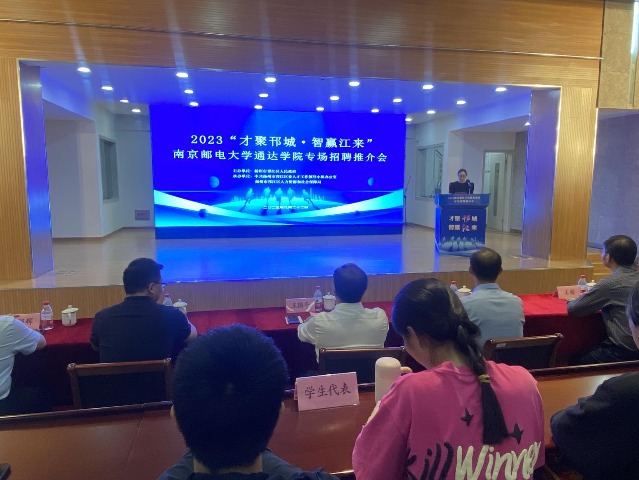 9月22日上午,威廉希尔官网分别在实验楼报告厅和大学生活动中心就业招聘大厅举办“才聚邗城·智赢江来”2023年高校毕业生williamhill官方网站英国威廉希尔公司专场招聘推介会。此次招聘推介会由邗江区人民政府主办,邗江区委人才工作领导小组办公室、邗江区人力资源市场管理办公室承办。邗江区人民政府副区长罗剑,人力资源和社会保障局党委书记、局长胡程辉,区委组织部副部长徐宽兴以及人力资源市场管理办公室主任徐友林,威廉希尔官网院长王国平,党委副书记、副院长王楷等出席活动。