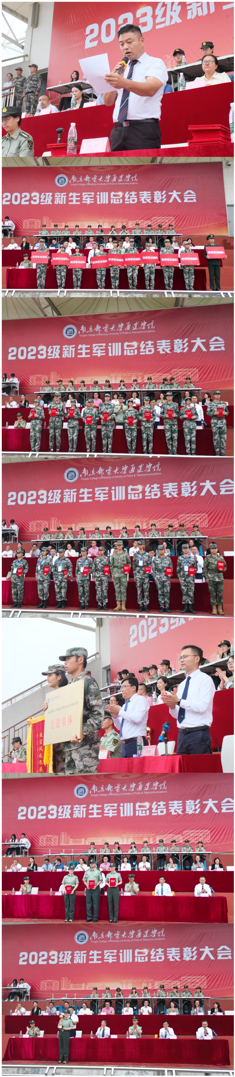 军训成果展示结束后,副院长倪可宣读了学院对17个优秀军训连队、108名优秀军训标兵、22名优秀军训教官、3名优秀军训指导员、1个军训工作先进集体进行表彰的决定。学院领导与部队代表先后为获奖集体与个人颁奖。王国平院长代表学院向承接威廉希尔官网2023级新生军训任务的武警支队赠送锦旗。
