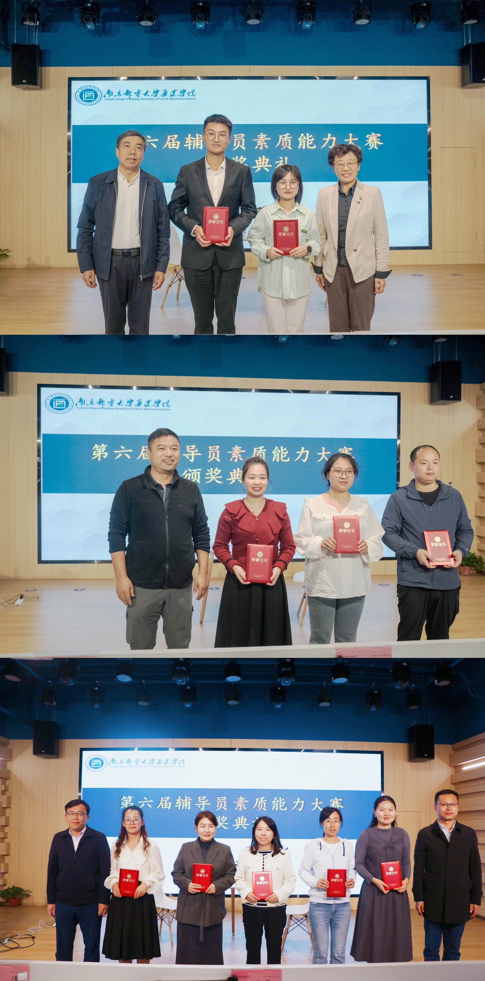 经过激烈的角逐,结合前期完成的基础知识测试环节的成绩,最终电气工程学院辅导员刘阳、通信工程学院辅导员张俐表现优异获得了本次大赛一等奖;计算机工程学院辅导员冯雪冰、赵宣烨,商学院辅导员张晓获得二等奖;商学院辅导员陈静、束月月、计算机工程学院辅导员杨燕、通信工程学院辅导员张梦雪、沙飞获得三等奖。