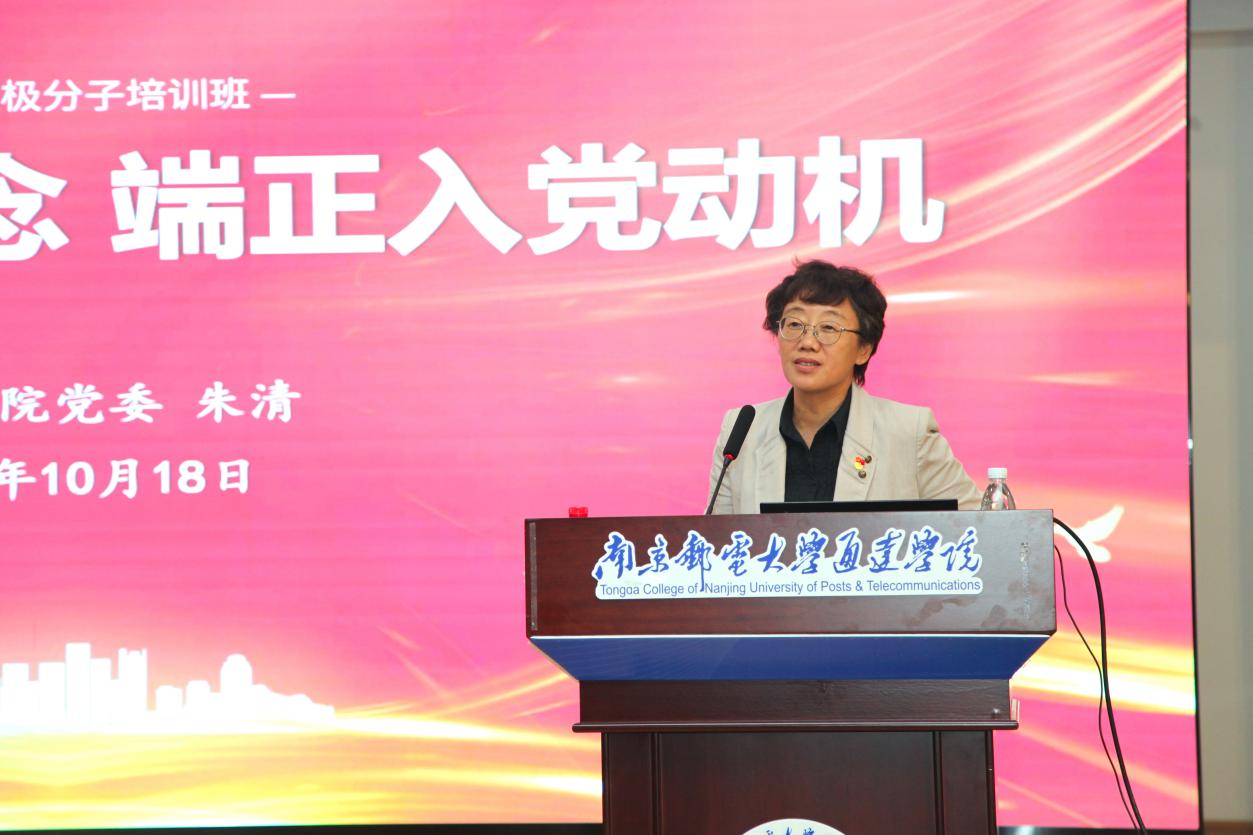 院党委书记朱清作了动员讲话。她首先对参与本次培训班的学员表示祝贺,希望全体学员珍惜这次宝贵的培训机会。并从为什么参加积极分子培训,培训学什么,怎么学这三个问题入手,阐述了参加积极分子培训班的重要意义,她强调全体学员要将理论学习和日常工作结合起来,在学习生活中,把学到的知识内化为信念,外化为行动。在培训期间要做好时间管理,认真参加每次学习活动、交流活动、实践活动,遵守党校的规定,高质量的完成培训任务。要自觉按照党员的标准要求自己,早日成为一名光荣的共产党员。