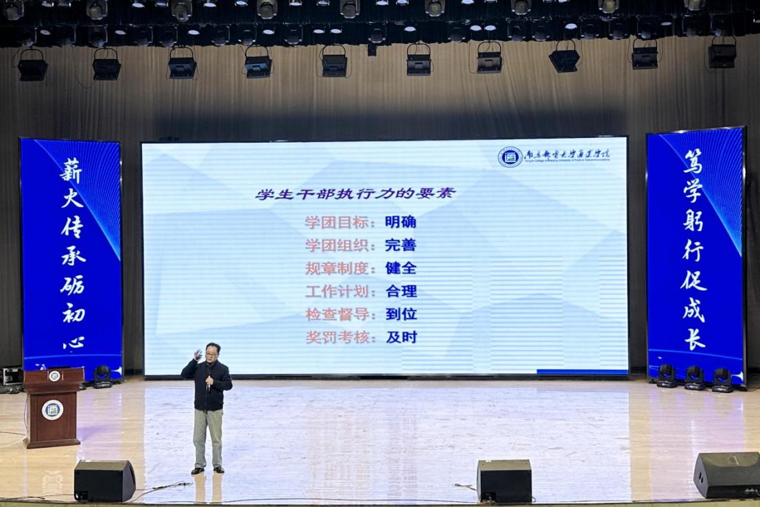 11月29日下午,威廉希尔官网在大学生活动中心礼堂组织开展了“薪火传承砺初心 笃学躬行砺成长”2023年学生干部素质能力提升培训。学院党委副书记兼副院长王楷、学工处负责人及2021-2023级全体班长参加培训活动。