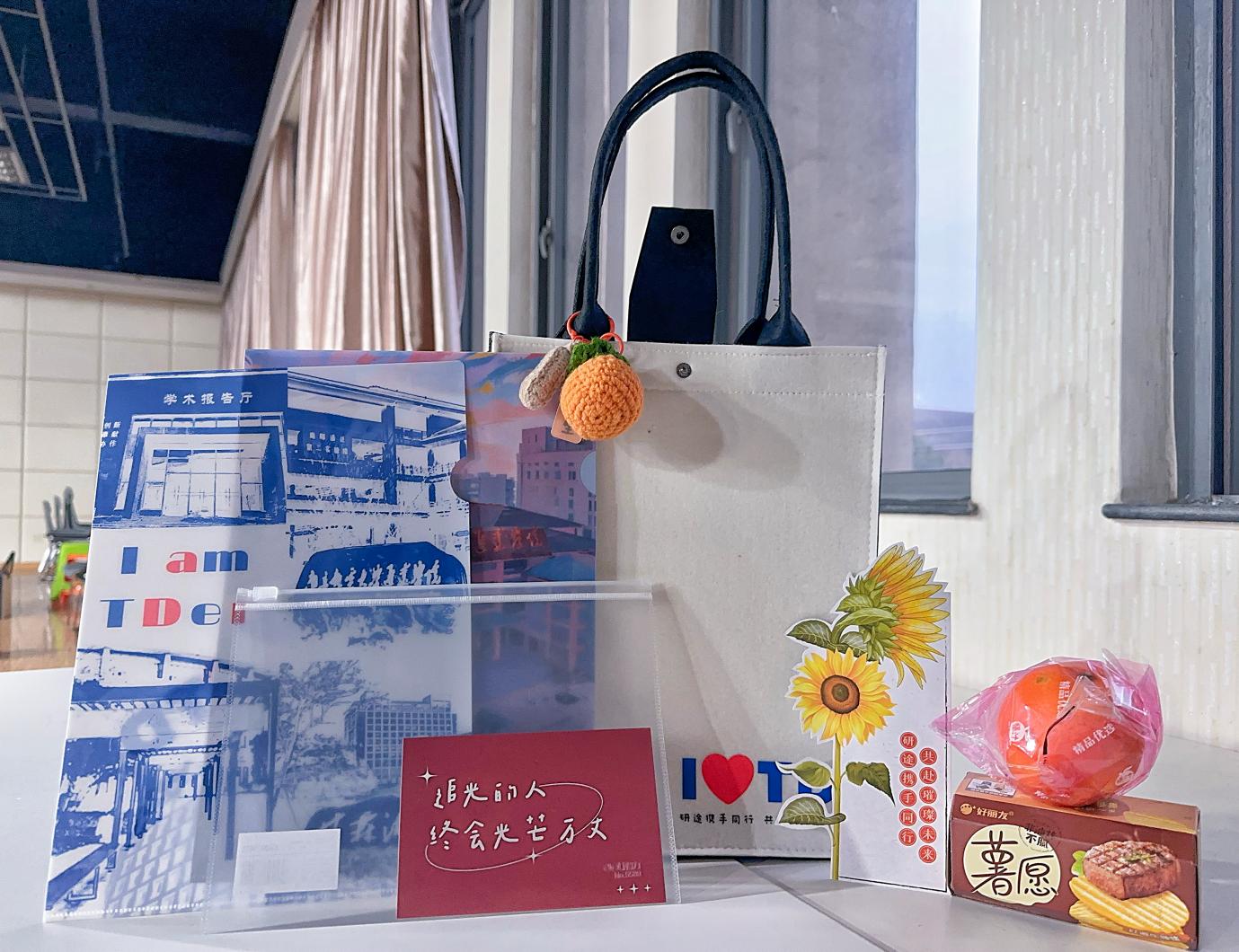 学生工作处为考研同学们精心准备的慰问礼包,包含“I❤TD”(毛毡包)、考研祝福签(书签/笔袋)、好事发生扣(钥匙扣)、一战“橙”硕(橙子)、幸运许愿罐(薯愿)等物品,希望同学们在最后的冲刺阶段,保持良好状态,迎难而上、脚踏实地,坚定信心、顺利上岸!
